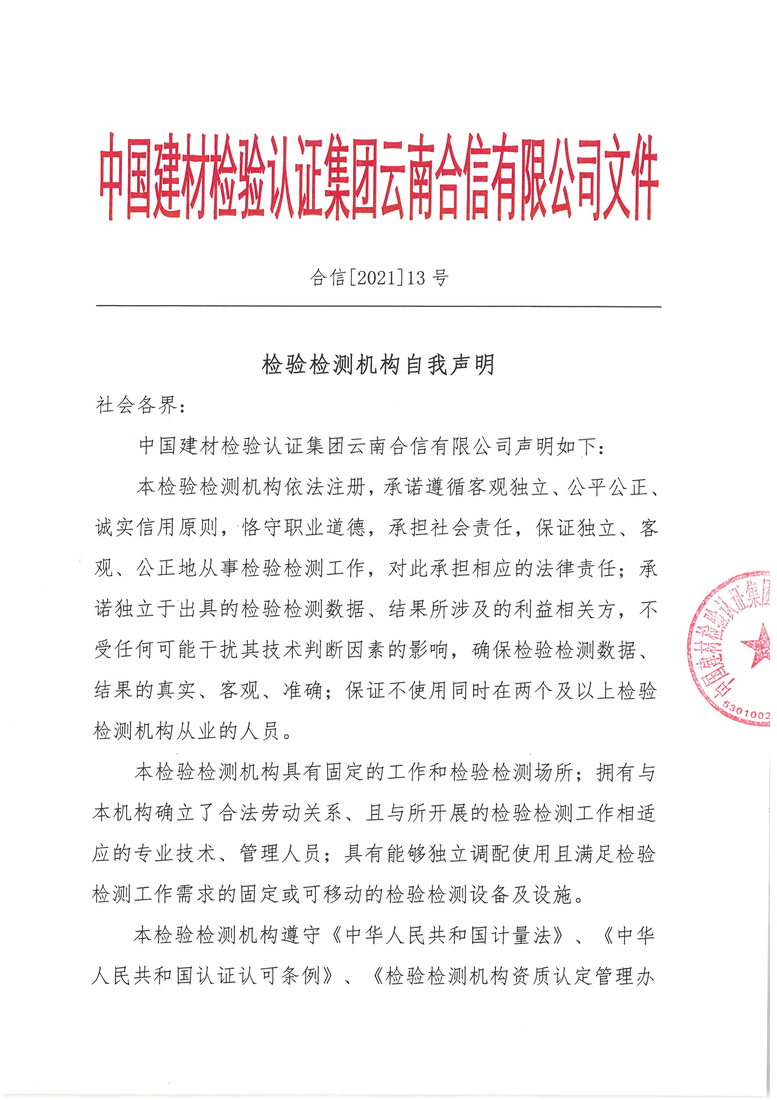 檢驗檢測機構自我聲明